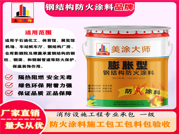 室外超薄型钢结构雨城防火涂料是一种由复合材料、阻燃材料、防火填料等组成,并选用最新型的阻燃剂、发泡、发炭、催化剂等加工而成的新型雨城防火涂料。该涂料涂层薄、用量少、耐火时间长,粘结力强,耐候、抗冲击、耐冻融性好。并具有较好的耐化工大气腐蚀性,涂层遇火时迅速膨胀增厚,形成发泡致密、均匀的隔热层,延长了耐火时间,从而达到防火保护作用。耐火时间根据等级不同可达0.50 h -2.00 h不等。